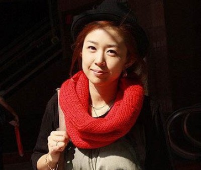 今冬大热红棕色ORGNITU染发,T台时尚率先告诉我们。这位MM一点都不落后马上紧随其后,橙色围巾加强了热和的印象,又比火热的红色要柔和,配上卷卷的秀发和小辫子,可爱少女印象立现