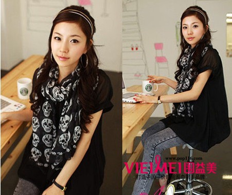6.轻盈结系法 把围巾在脖子上绕上一圈,将左右两段围巾交叉打结即可,简单易学,但效果却靓丽动人。