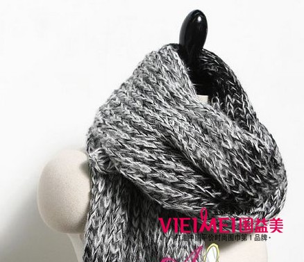 简约舒适的针织围脖,自然的绕在脖子上就可以了,面料厚实温暖,很实用。