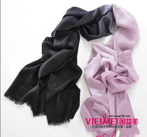韩式双层结推荐围巾一:渐变色围巾。两种纯色渐渐融合,系一个美丽的结后,两种色彩穿插在一起,显得很有层次感,时尚又有个性。