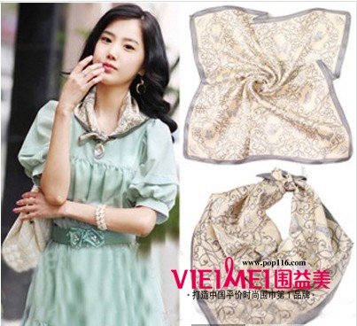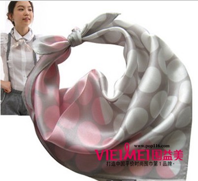小方丝巾的系法 扮靓女性的春季 小编点评:优雅色系小方丝巾,简约大方优雅气质,搭配蓝色雪纺丝巾尽显女人的优雅魅力与气质。