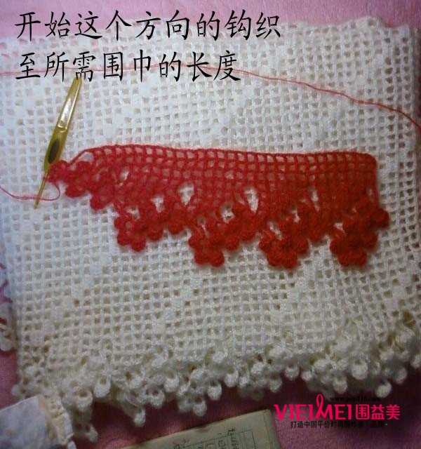 又到秋冬围巾盛行的季节,美女们自然少不了对围巾搭配的关注了!各式各样的围巾搭配裙装裤装,为你整款装扮,添加无穷的新意。这一季,围巾已跳出了御寒作用,更多的是作为装饰的时尚重磅单品。一款唯美出众款式的围巾,能为你的搭配起到画龙点睛的作用。下面给大家介绍一款很有层次感的优雅的花边围巾手工编织方法,很有范儿。相信如何让围巾与服饰搭配得夺人眼球又时尚潮流,你一定有自己的打算喽~