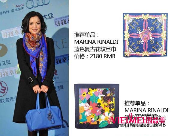 手拎爱马仕包包的白雪身着黑色毛呢大衣搭配一双尖头皮靴,颈间的蓝色爱马仕经典纹样丝巾颜色与包包一致,吸引人眼球的同时透露着复古的奢华。