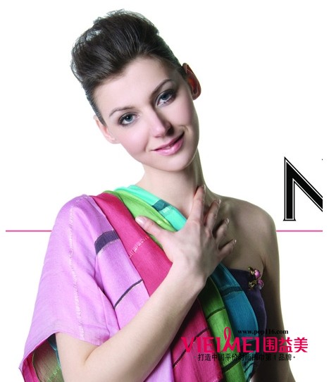 当穿好了衣服之后,如想再添另一色彩时,自可另加一条他色丝巾,然后以两条丝巾分别扭转来围卷