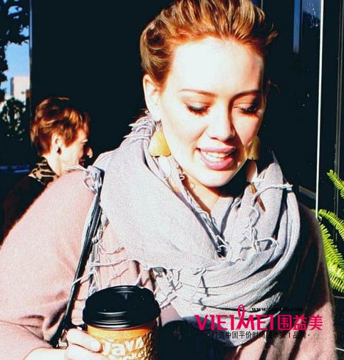 希拉里·达芙(Hilary Duff) 很擅长用围巾来“扬长避短”,用大围巾将视线集中在她的面部而让人们忽视她那有些小肉肉的身材。就这身搭配而言,围巾很好的增强了着装的层次效果。
