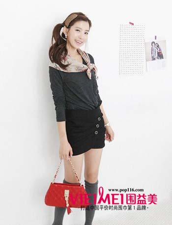 成熟感的灰色系带来优雅大方的感觉,甜美感的丝巾与点缀其间的红色与玫瑰色令活泼感跃然而生。