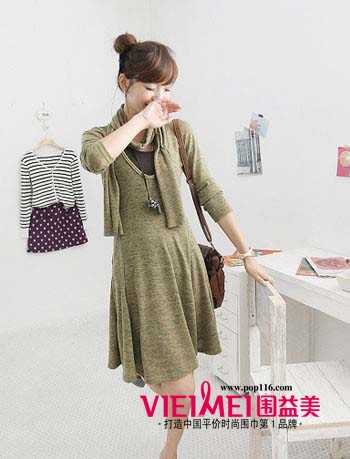 轻盈舒适的连衣裙装独特的色调透出浓浓秋日情怀,配有细款的围巾可以轻松打造出平凡造型的亮点之处,略有厚度适合秋冬时候穿着。