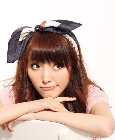 可爱俏皮风:齐刘海长直发mix黑白丝巾