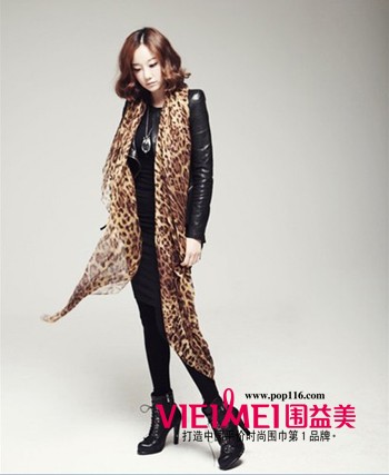 说到丝巾怎能少了充满野性魅力的豹纹花样,黑色亮皮夹克搭上同色打底裤整体看上去很性感强势,豹纹丝巾材质轻柔花样十分性感,颜色也很正,这样的搭配组合在一起,你一定会散发十足的性感魅力。