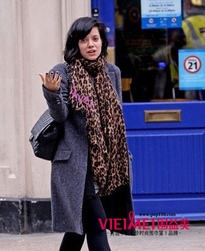 莉莉·艾伦(Lily Allen) 这身装扮除了这条豹纹围巾,你丝毫看不出她的“火爆性格”。