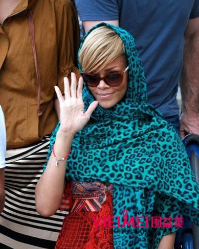 也就蕾哈娜Rihanna有勇气用这般艳蓝的豹纹配红色装饰纹样衣裙。