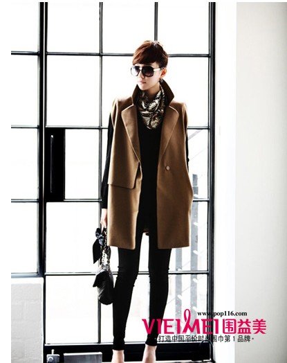 黑色和巧克力色的混搭,使轻薄的丝巾不再单调,略带层次而不浮夸,竖纹的设计更是其特别之处。