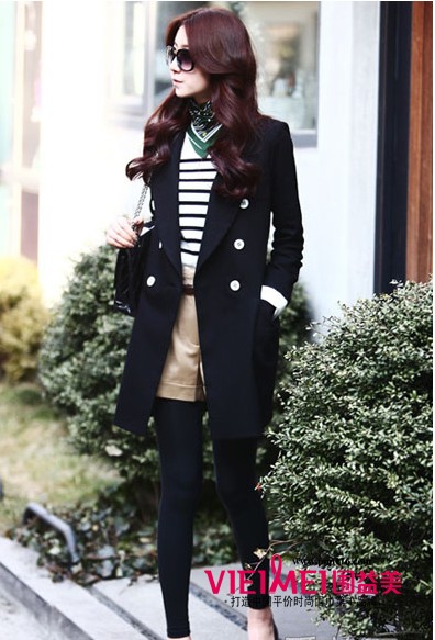 【时尚搭配】黑色长款外套+黑白条纹装+卡其色短裤