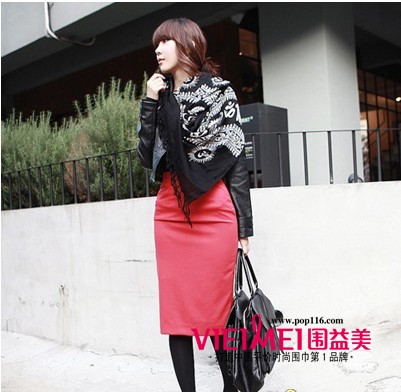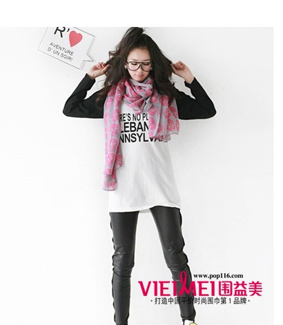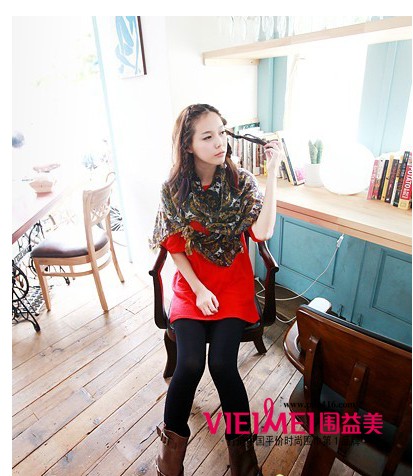 经典复古围巾,丰富印花图案,吸引眼球 想成为街头达人就这么简单!-时尚印花围巾,款式简洁大方,搭配热情奔放的红色上衣,互相衬托,把上衣和围巾各自的特色都展露无遗。