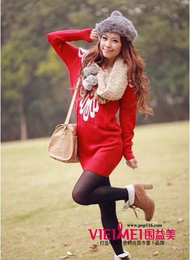 对于长款的套头围脖,只要直接围一圈,简单又暖和,让一身的搭配有了时尚的主角。值得一提的是围脖部分添加了多种色彩的设计,与红色针织衫完美搭配,烘托节日气氛。