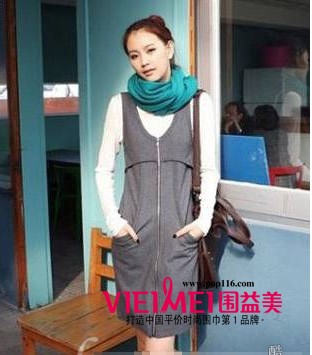 把围巾在脖子上绕一圈,绕出温度和时尚感,秋冬季节,必备一条时尚的围巾!灰色连衣裙可可谓是百搭的,但要展现出你的青春活力,这款灰色连衣裙适合用鲜亮高档的颜色的颜色搭配,青色调大气清爽感十足,点亮一身暗色调的搭配,就是这一抹青色,你的冬装装扮就有了活力!