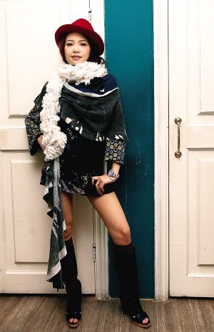 造型完成!五条围巾形成的丰富层次,可爱而不失优雅,闪现着时尚的动人活力。