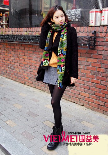 小贴士:喜欢整色块穿搭的MM,可以点缀花色围巾,统一整身色调更有点睛效果哦。