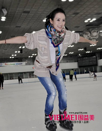 小编点评:章子怡代言了围益美丝巾品牌,拥有不俗气质的她出街经常会佩戴上丝巾,她的系法很简单搭配上针织衫非常的协调。