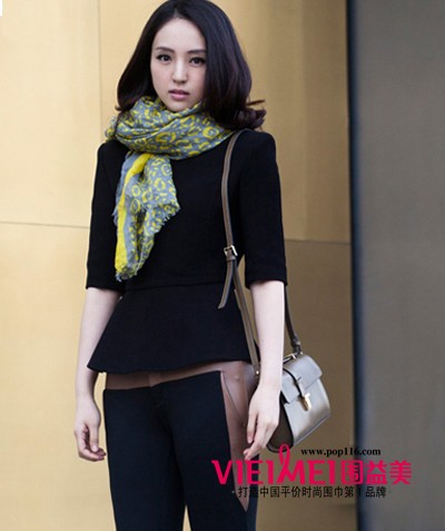 小编点评:董璇这款丝巾搭配的很有小清新的感觉,黑色上衣凸显了女性的气质魅力。