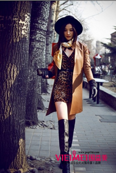 小编点评:少女时代徐英豹纹流苏丝巾系法,让她这款长款风衣增添了帅气的成分,很有大牌范儿。