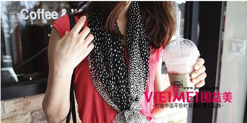 很有甜美范儿的一款围巾,丝滑的绸锦面料飘逸而柔滑,搭配外套或者小开衫都让人感觉很甜美。