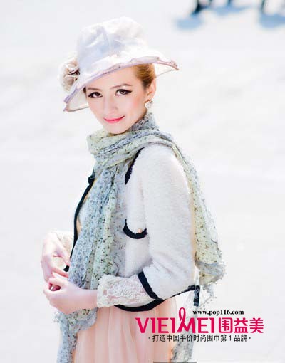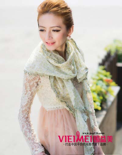 小编点评:轻盈,纯净,富含田园风情的一款丝巾,搭配上类似透视连衣裙,围在脖间搭载肩膀,淑女气质完美的呈现了出来。