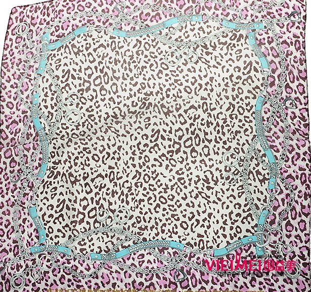 仍然是时尚潮流不可缺少的豹纹,有经典的咖啡豹纹,还有特别的粉红豹和黄豹。而这款小尺寸的小方巾,即使是在热带的夏天也可以充当配置。
