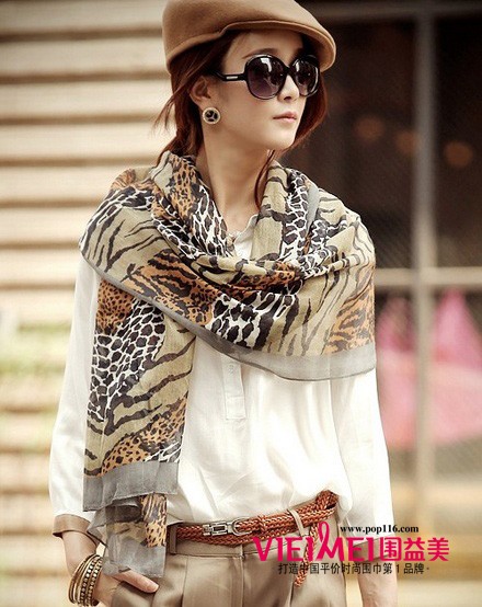 女人的优雅不需要刻意去装扮,一条豹纹围巾就可以显出女人的精致与品味,让女性魅力自然散发。
