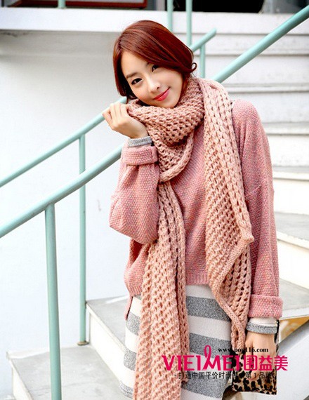 1.绕半圈或半披法 今秋的豹纹围巾真的是无孔不入啊,就连帅气干练风的OL也为它着迷,让潮酷的装扮中也带上一点女人的性感。 2.绕一圈 大孔洞的宽大针织围巾,保暖又时尚,也可以做披巾、头巾或马甲佩戴,有多组合多变化的效果,适合OL搭配休闲类服饰的好帮手,长款毛衣+legging+翻毛靴,是不是显得青春又时尚。 花色格子围巾也是OL的搭配好物,素色的开衫与外套、风衣,都可以用它来提升层次感,简洁大方又有时尚感。