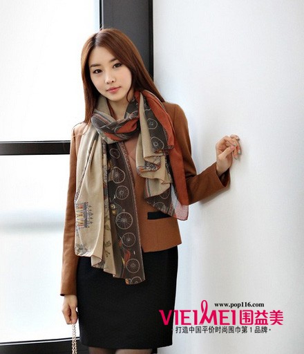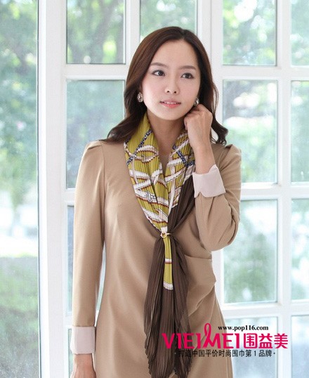 给喜欢带花色围巾的OL一个小绝窍,在搭配花色围巾时一定要选择至少围巾1/3面积的颜色与你的所穿的服装颜色接近,这样就不会显得突兀或不搭调了。