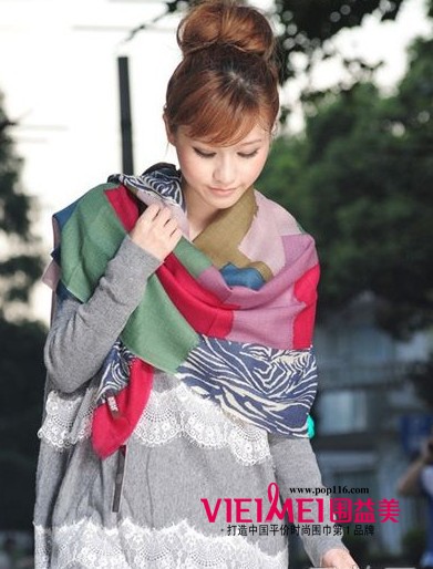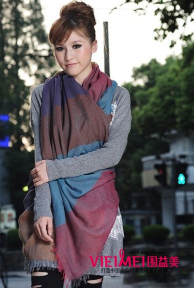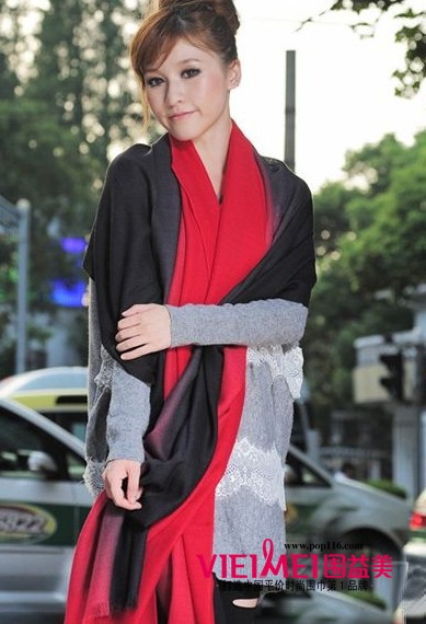 大规格渐变素色披肩,宽版的线条,细腻的面料,给人以非常温馨的感觉,鲜明靓丽的色彩搭配,给人以无限的优雅感,同时具有超凡的活力。