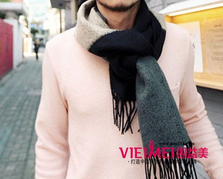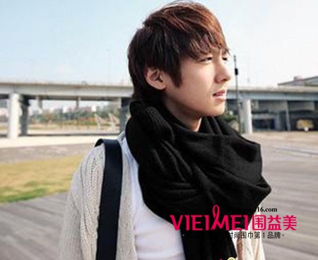 围巾绕成两层围在脖子上,再把一头拉到另一头的小孔中,再微微拉出即可。小帅气的感觉有木有,个性十足,让人眼前一亮哦。