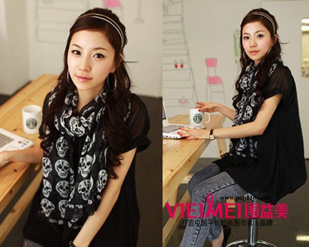 将围巾对折成两半,套在脖子上,再把左(或右)边端往后放,随意自然,不管前后,同样展现小女生专属的俏皮。