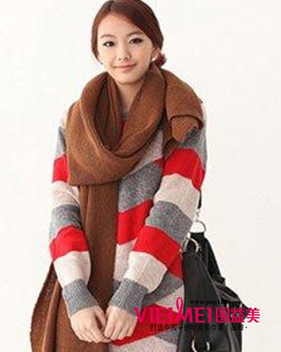 把围巾在脖子上绕上一圈,将左右两段围巾交叉打结即可,简单易学,但效果却靓丽动人。