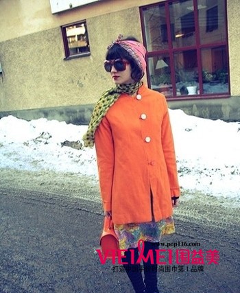 欧美明星玩转复古风格,橙色长款大衣搭配波点丝巾大气场风暴席卷而来