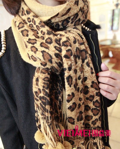个性十足的豹纹围巾,当狂野的豹纹遇到可爱的毛球,变得时尚变得优雅。