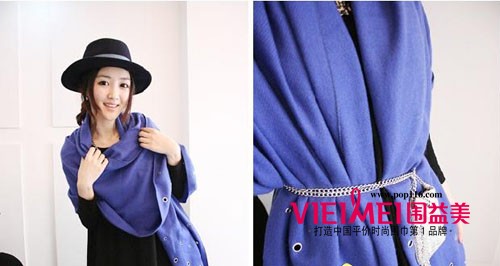 非常有特色的大围巾,还能当披肩,金属环的镂空装饰个性十足
