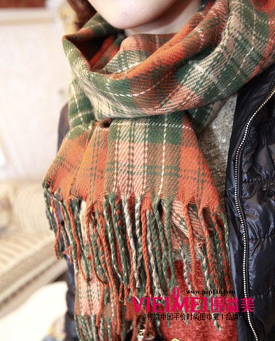 非常森女的一款格仔围巾,淡淡的颜色大方时尚。