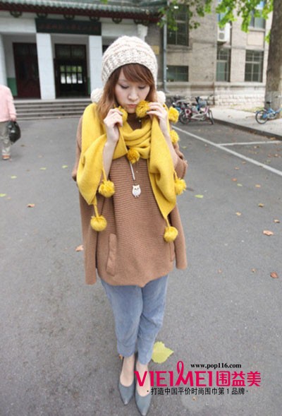 今年超级流行的毛球围巾,当围巾,当披肩,保暖御寒又可爱的搭配小物。