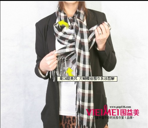 大蝴蝶结展示二:轻柔的雪纹材质围巾,打大蝴蝶结更加丰满靓丽。