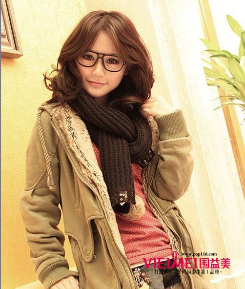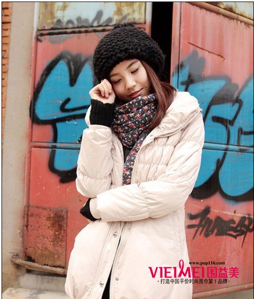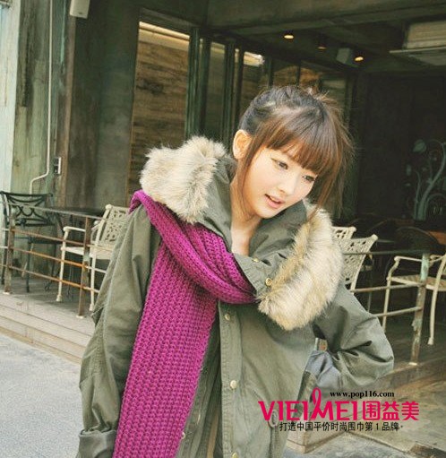 军绿色的宽松款棉衣外套,有种军统风味。配上桃红色的手工编织围巾,撞出了美眉对时尚的品味