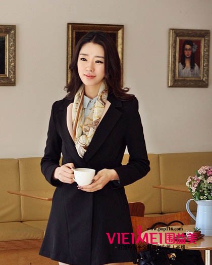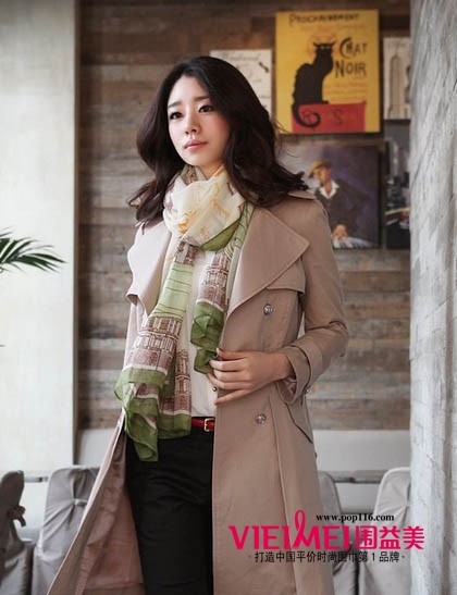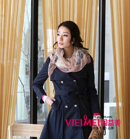 深色系的外套,要搭配一条浅色的丝巾,柔粉色会更显女性气质,潮味十足