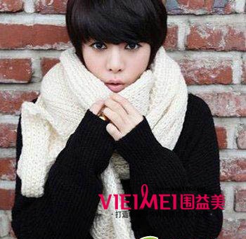 短发+围巾 清爽的短发和围巾搭配,肯定适合。乌黑自然的发色,给人一种最淳朴的自然美感。柔顺的短发打造出蓬松效果,有着空气质感,呈现出青春的气息和无限的活力,散发出几分帅气和柔和美。齐眼的整齐刘海让眼睛显得更加有神,搭配包裹着脸颊米白棉围巾,打造出超小脸效果。