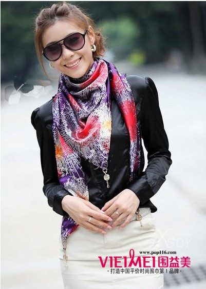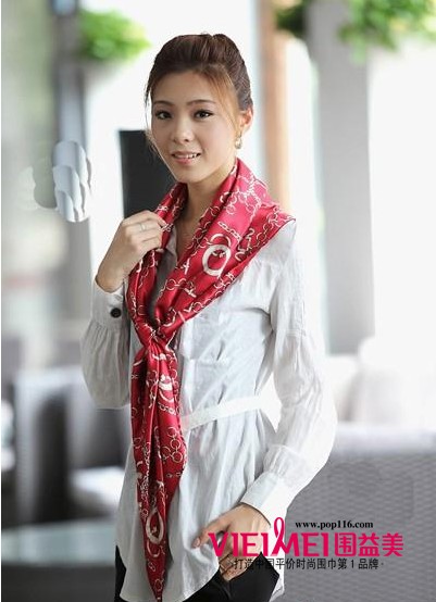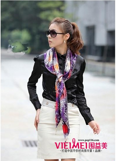 小编点评:这款丝巾双层三角非常的舒适,搭配白色女士衬衫非常的绝妙,很有气质,感觉也非常的文静,很让人享受这美丽的一刻,摊在肩膀系在胸前,非常的有时尚感。