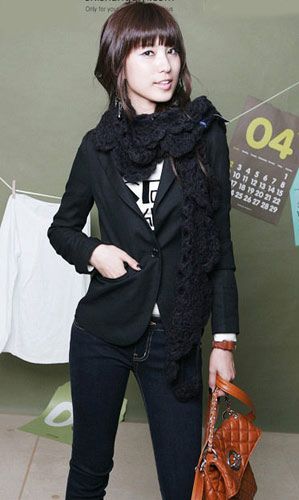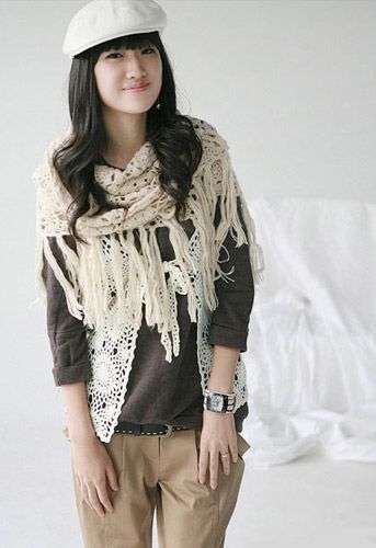 特别推荐V字围巾,适合肩宽女生,有相当的修饰作用。
