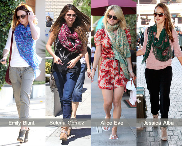 导语:围巾是每年转季的拗造型圣品,在转季时能为整体装扮增色不少!杰西卡·阿尔芭(Jessica Alba)荧光粉围巾、菲姬(Fergie)经典MCQ骷髅丝巾、米兰达·可儿(Miranda Kerr) 斑马条纹丝巾,一起看看明星们的示范吧。