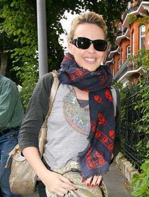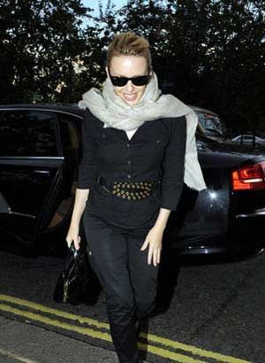享有澳洲性感宝贝美誉的凯莉米洛(Kylie Minogue)离开位于西区的家。白色披肩随意而优雅,使米洛显得极富波西米亚风情