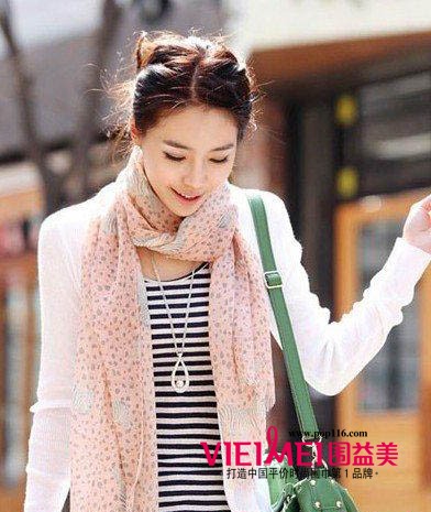 粉色淡淡的围巾搭配条纹打底衫和白色开衫,休闲清新,怎么围都能给人甜美感觉的围巾你一定要拥有!