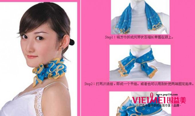 方巾折叠的宽度可根据颈部比例而定,太宽的话导致整条丝巾失去平衡感。搭配圆领时,可以将带有休闲风格的衣领演绎得更加华美。与方领的搭配,会让你看上去充满女人味。搭配套装最好选用尺寸稍大一些的丝巾,看起来感觉更加协调,使丝巾的两端垂在前面,增加丝巾褶的垂感。另外要记住,这个较不适合脖子太短或水梨型脸型。